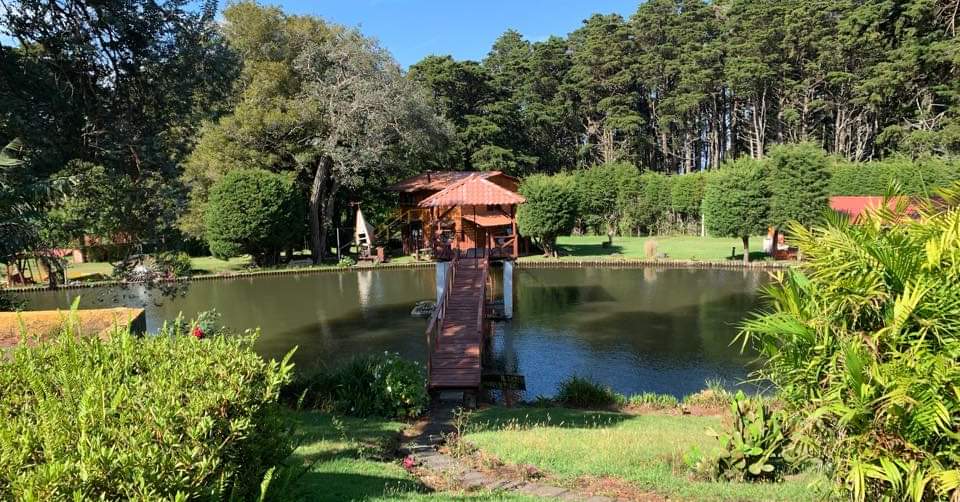 Hermosas y amplias cabañas equipadas para 2-4-6 hasta 15 personas, con bellas áreas verdes, pequeña cancha de futbol, una gran laguna de mas de 2000 metros